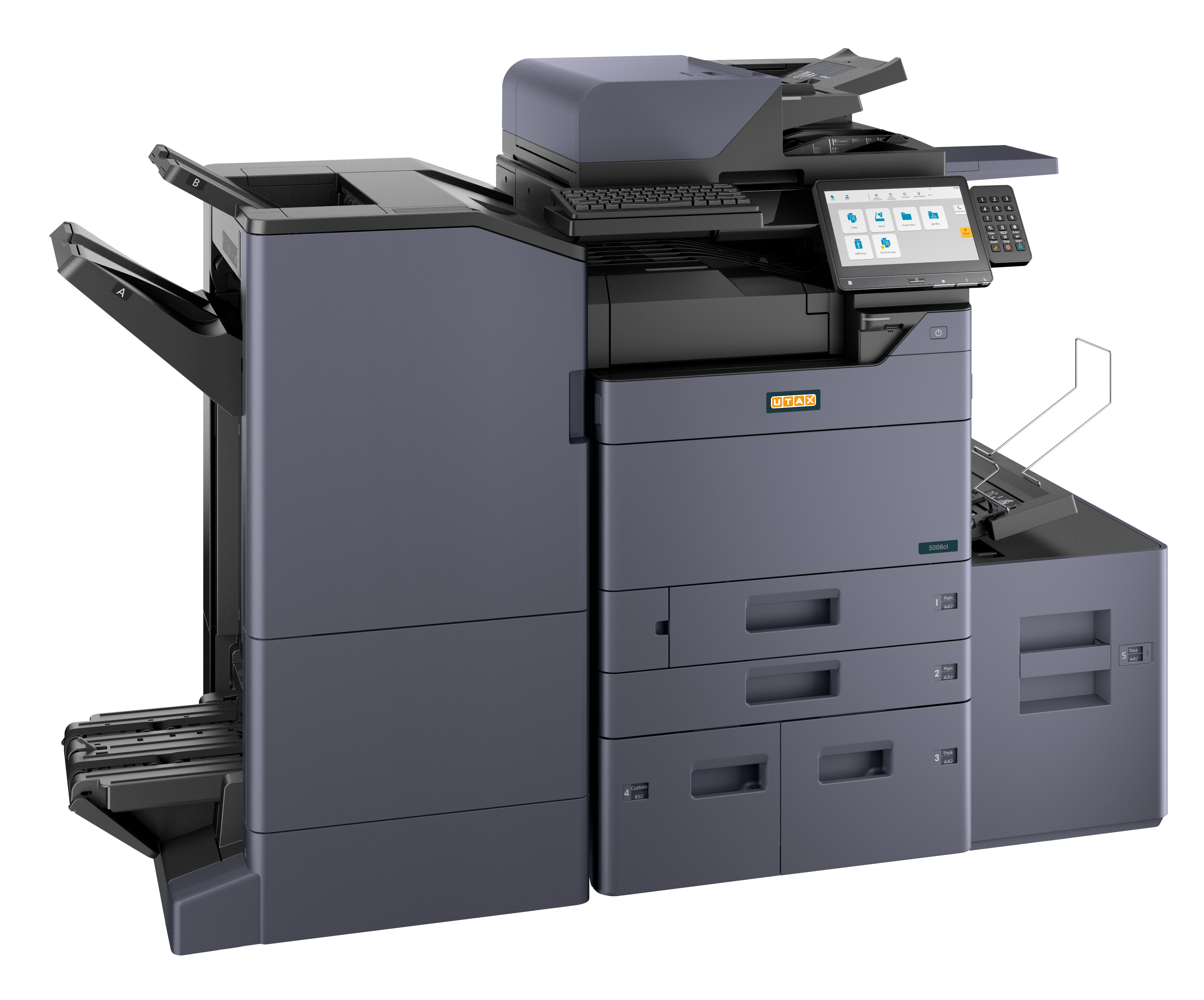 - PapierzufuhrPF-7140 (2 x 500 Blatt Universalkassetten [DIN A5R-SRA3]), PF-7150 (2 x 1.500 Blatt Großraumkassetten [DIN A4]), PF-7120 (3.000 Blatt seitliches Großraummagazin [DIN A4])