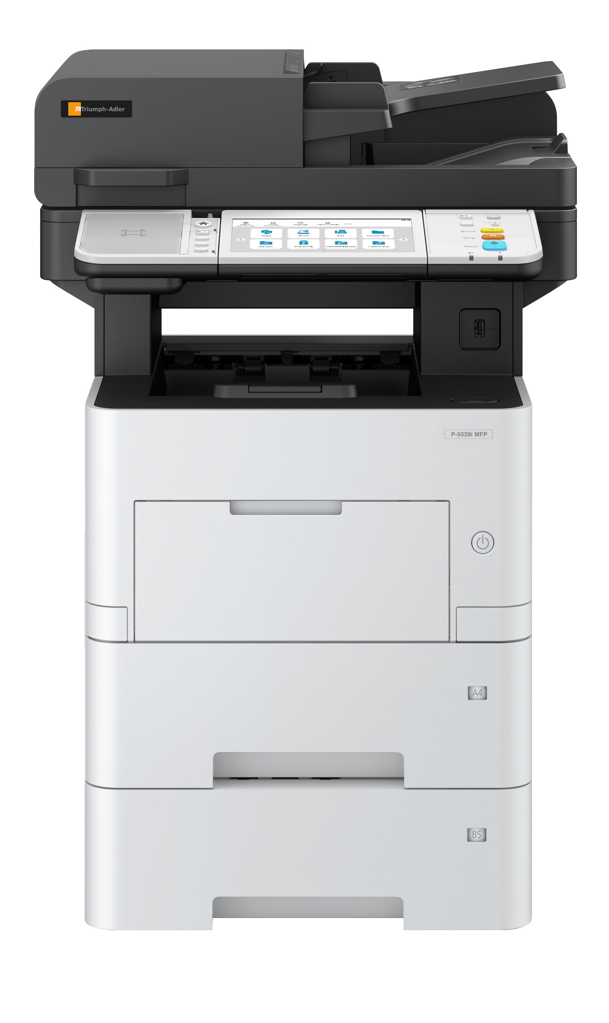 Das Secure Boot Verfahren und der Run-Time Integrity Check beim P-5539i MFP sorgen für nachhaltige Sicherheit Ihrer Daten, die serienmäßige HyPAS-Schnittstelle erlaubt die Integration optionaler kundenspezifischer Softwarelösungen und Applikationen. Dabei sind der Bedienkomfort und die Produktivität mit 55 DIN-A4-Seiten/Minute sehr hoch. Für die professionelle Digitalisierung steht ein Dual-Scan-Einzug im Standardlieferumfang zur Verfügung,